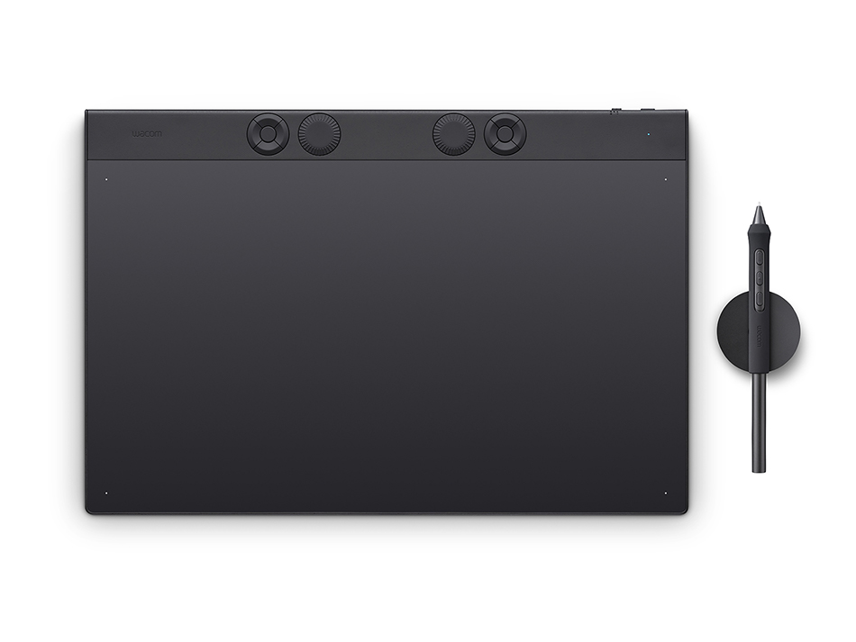 The Intuos Pro drawing tablet, Wacom’s flagship tablet, combines cutting-edge pen technology with unmatched precision, comfort, and versatility to help creators achieve the perfect harmony between work and flow. Designed with professional needs in mind, it’s the only Wacom graphic tablet featuring the customizable Pro Pen 3, which allows you to adjust the grip, weight, and button configuration for a personalized experience with Wacom’s most sensitive and accurate pen technology. This art tablet’s ergonomic layout includes intuitive dials and ExpressKeys, located at the top of the tablet and easily accessible for both left- and right-handed users. At its thinnest, Intuos Pro is only 4mm, and is built with durable magnesium, it’s portable yet rugged, ideal for studio or on-the-go use. With three sizes to suit any style—whether for detailed editing or expressive art forms - Intuos Pro integrates seamlessly with creative software and supports Bluetooth® connectivity. It’s also compatible with previous generation Wacom Pro Pens and EMR styluses from brands like LAMY and STAEDTLER.