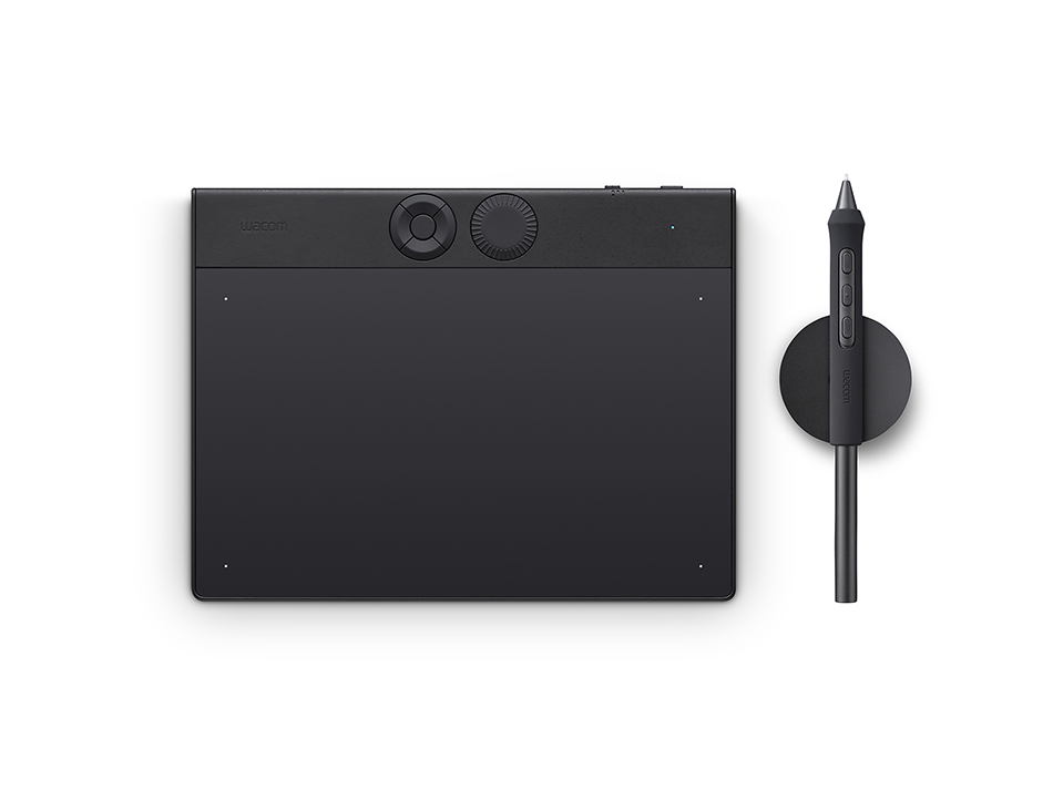 The Intuos Pro drawing tablet, Wacom’s flagship tablet, combines cutting-edge pen technology with unmatched precision, comfort, and versatility to help creators achieve the perfect harmony between work and flow. Designed with professional needs in mind, it’s the only Wacom graphic tablet featuring the customizable Pro Pen 3, which allows you to adjust the grip, weight, and button configuration for a personalized experience with Wacom’s most sensitive and accurate pen technology. This art tablet’s ergonomic layout includes intuitive dials and ExpressKeys, located at the top of the tablet and easily accessible for both left- and right-handed users. At its thinnest, Intuos Pro is only 4mm, and is built with durable magnesium, it’s portable yet rugged, ideal for studio or on-the-go use. With three sizes to suit any style—whether for detailed editing or expressive art forms - Intuos Pro integrates seamlessly with creative software and supports Bluetooth® connectivity. It’s also compatible with previous generation Wacom Pro Pens and EMR styluses from brands like LAMY and STAEDTLER.